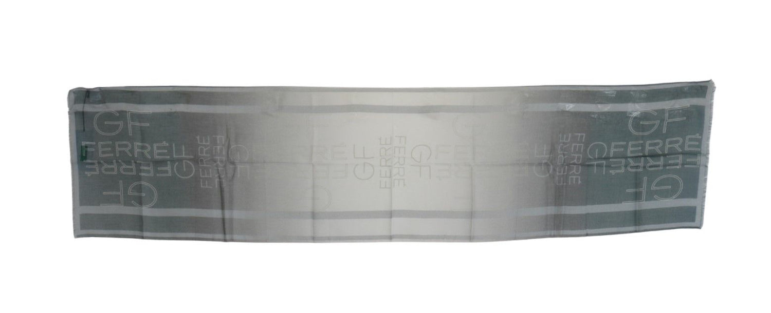GF Ferre Gray Wool Viscose Foulard Patterned Branded Scarf