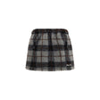 The check mini Skirt by Miu Miu reinterprets a classic graphic pattern with a contemporary and dynamic aesthetic. The design features a check pattern, front closure, and an elasticated waistband with drawstring that ensures comfort and an adjustable fit. The embroidered logo completes the piece with a distinctive detail that reflects the refined identity of Miu Miu.