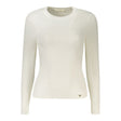 Elevate your style game with this sleek Guess Jeans’ crewneck top. Crafted with a flattering canettata texture and adorned with a striking logo application, this long-sleeved piece is a testament to chic, everyday sophistication. Perfect for those who seek a bold yet timeless fashion statement. Embrace the blend of comfort and luxury in a piece crafted from high-quality materials. Originating from China, this piece promises to add a trendy edge to your wardrobe in an immaculate white hue.