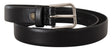 Dolce & Gabbana Black Calf Leather Silver Tone Logo Buckle Belt
