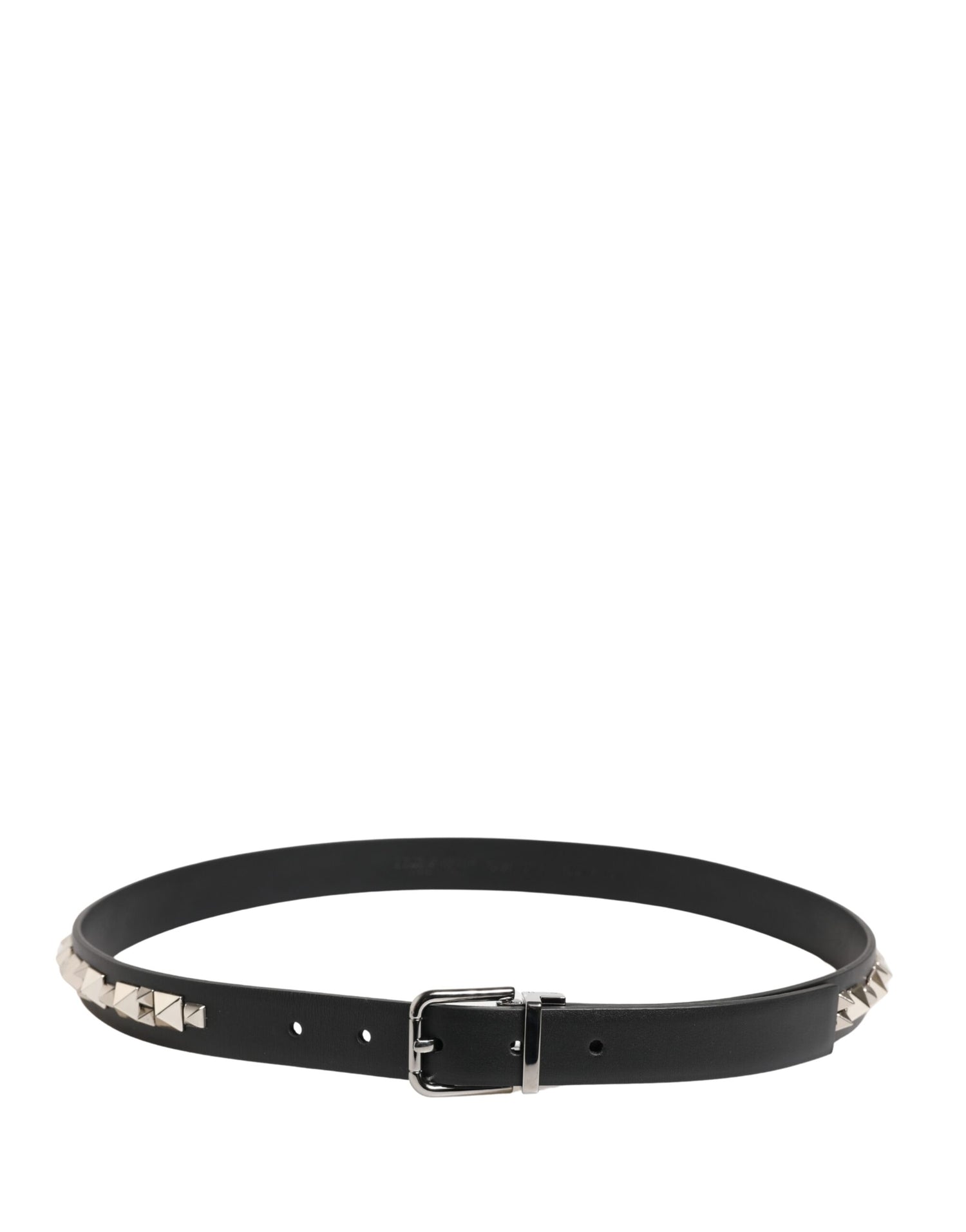 Dolce & Gabbana Black Leather Studded Silver Tone Buckle Belt