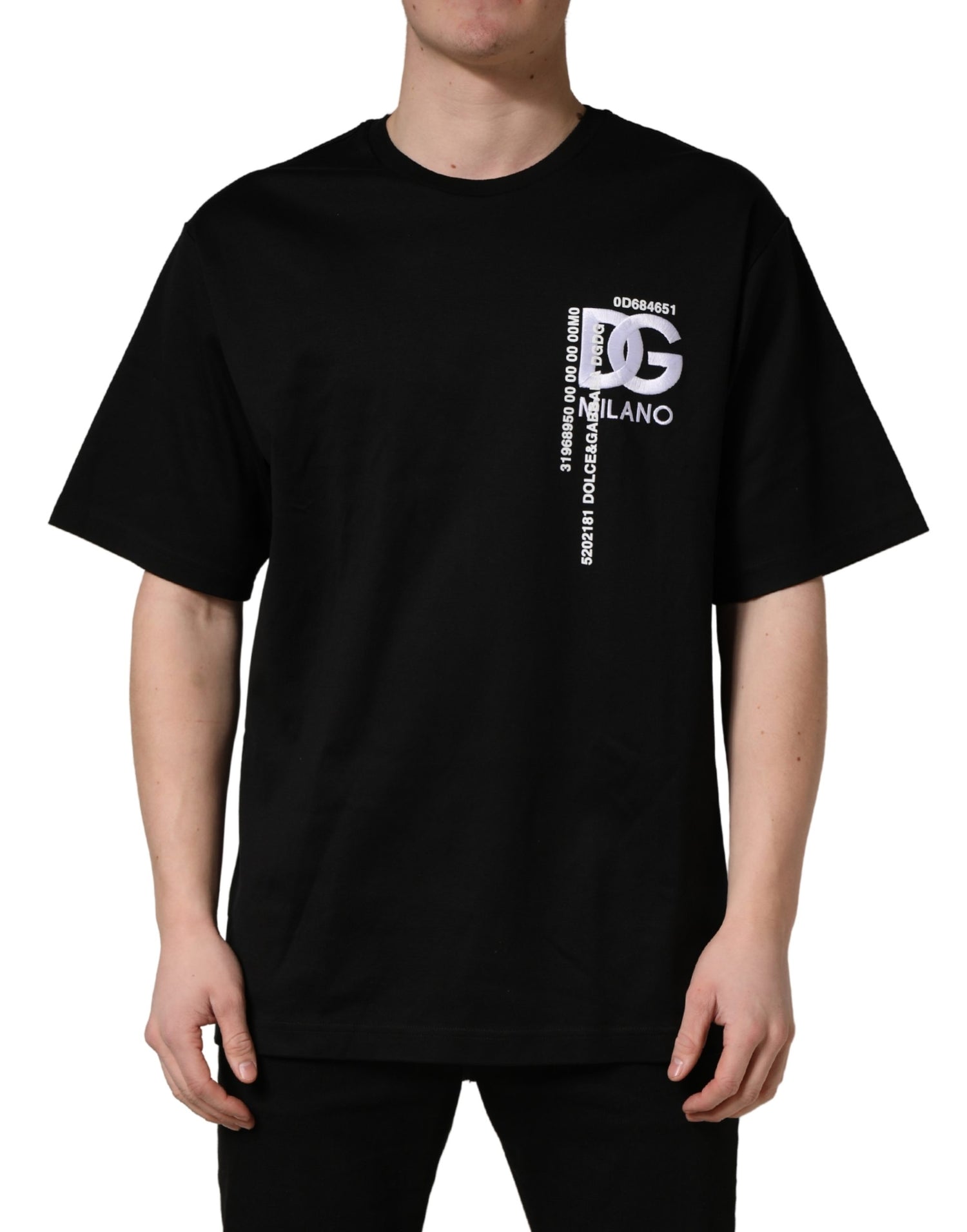 Dolce & Gabbana Black Logo Embroidered Men Crew Neck T-shirt