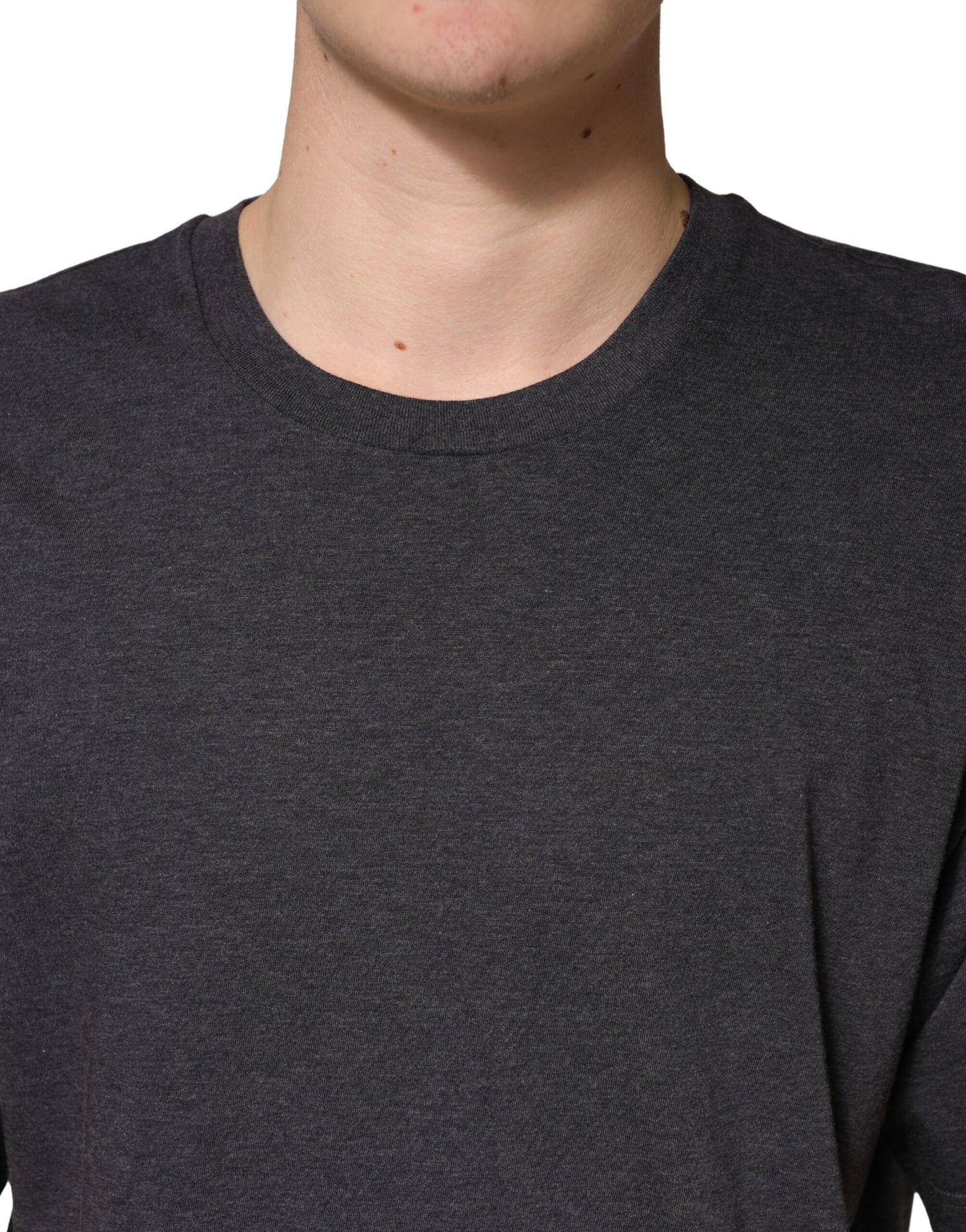 Dolce & Gabbana Dark Grey Cotton Crewneck Short Sleeve