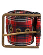Dolce & Gabbana Red Plaid Fabric Logo Plate Brass Buckle Belt