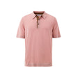 Polo Knitting Pattern in Rosa Gran Sasso. In pink cotton with brown detail on the collar and bottom, classic collar, three-button closure
