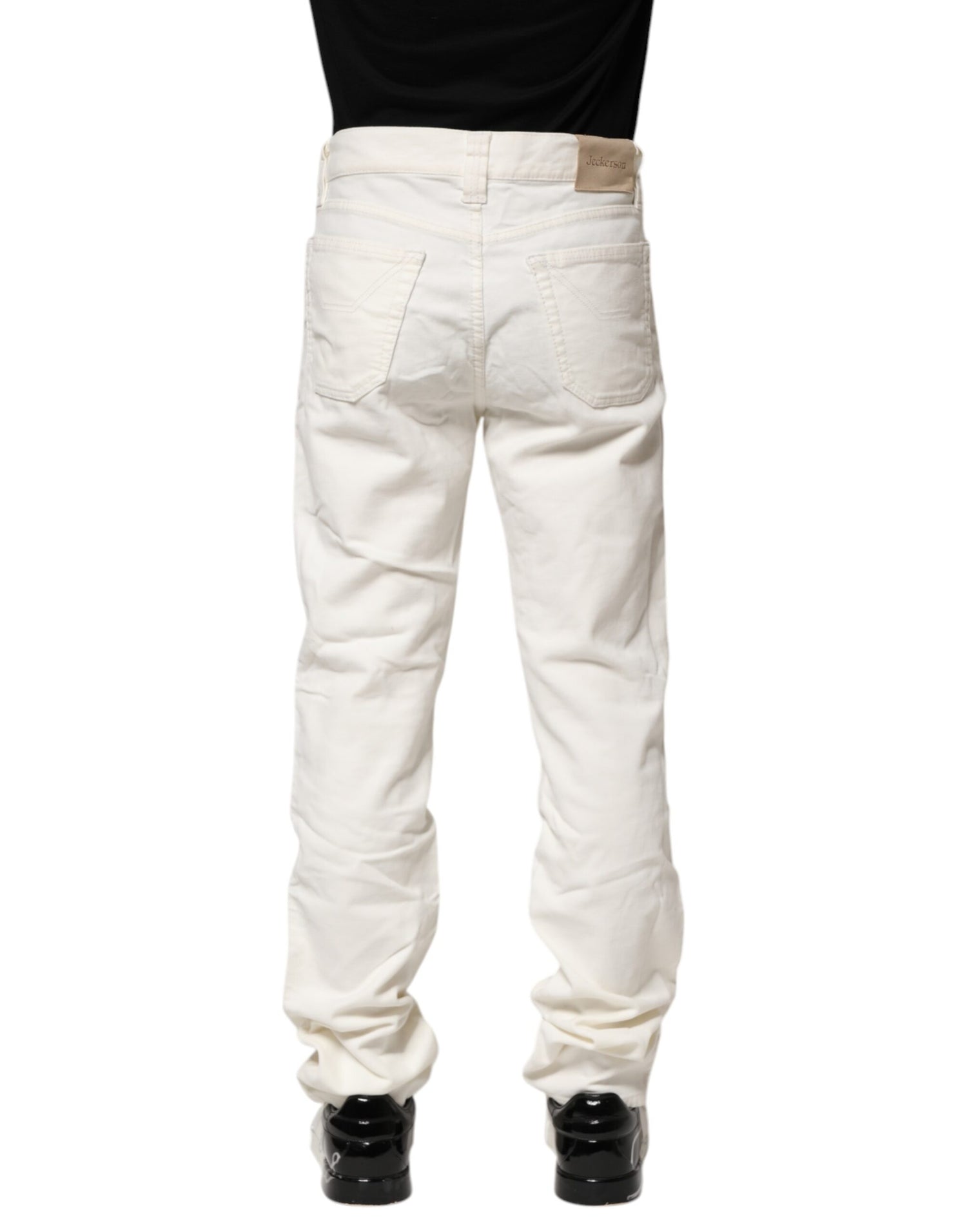 Jeckerson White Cotton Stretch Straight Fit Men Denim Jeans