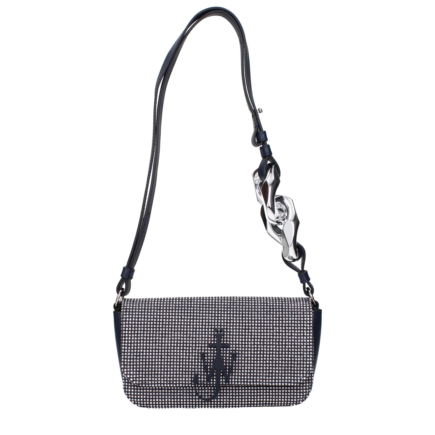 The product with MPN HB0530FA0274743 and code F83627 fabric in blue is a shoulder bags designed by Jw Anderson. It has features like front logo, adjustable handle, studs.