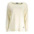 White Cotton Jeans & Pant Long sleeved shirt with wide neckline Contrasting details and logo Made from recycled fibers Suitable for women 30% Cotton 70% Viscose Size on Tag: M