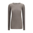 The long-sleeved T-shirt by Rick Owens is hip-length and has a slim fit that follows the silhouette. The ribbed crew neck, raw-cut hem, and cuffs add a distinctive, modern touch. The single seam detail running down the center back is the designer’s signature, making this T-shirt a unique and unmistakable piece. Perfect for a minimalist yet avant-garde look.
