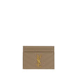 Calfskin Card Holder by Saint Laurent, quilted matelassé design, front plaque with iconic three-dimensional YSL logo, card slots on front and back, bill compartment on top.