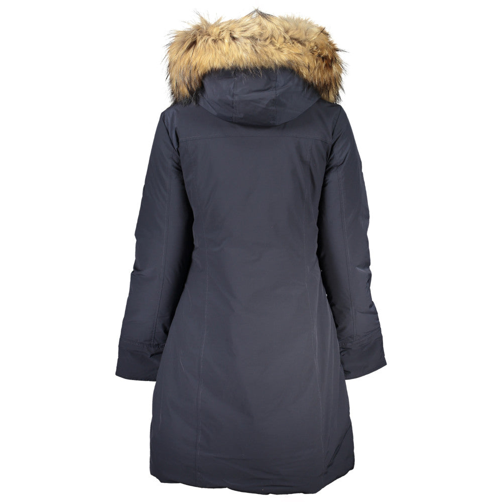 Woolrich Long Jacket with Removable Fur Navy Blue - Women's