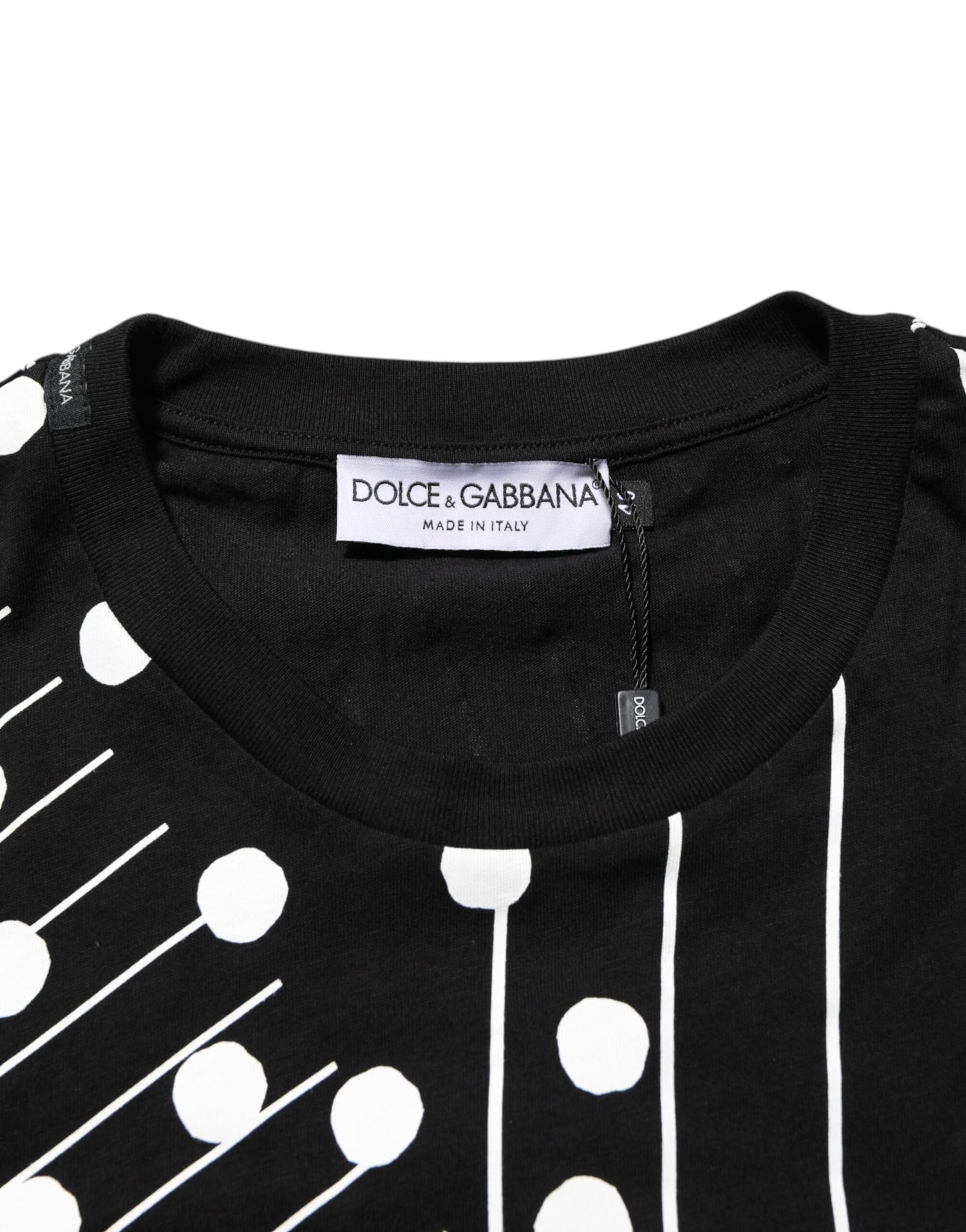 Dolce & Gabbana Black Cotton Polka Dots Round Neck T-shirt