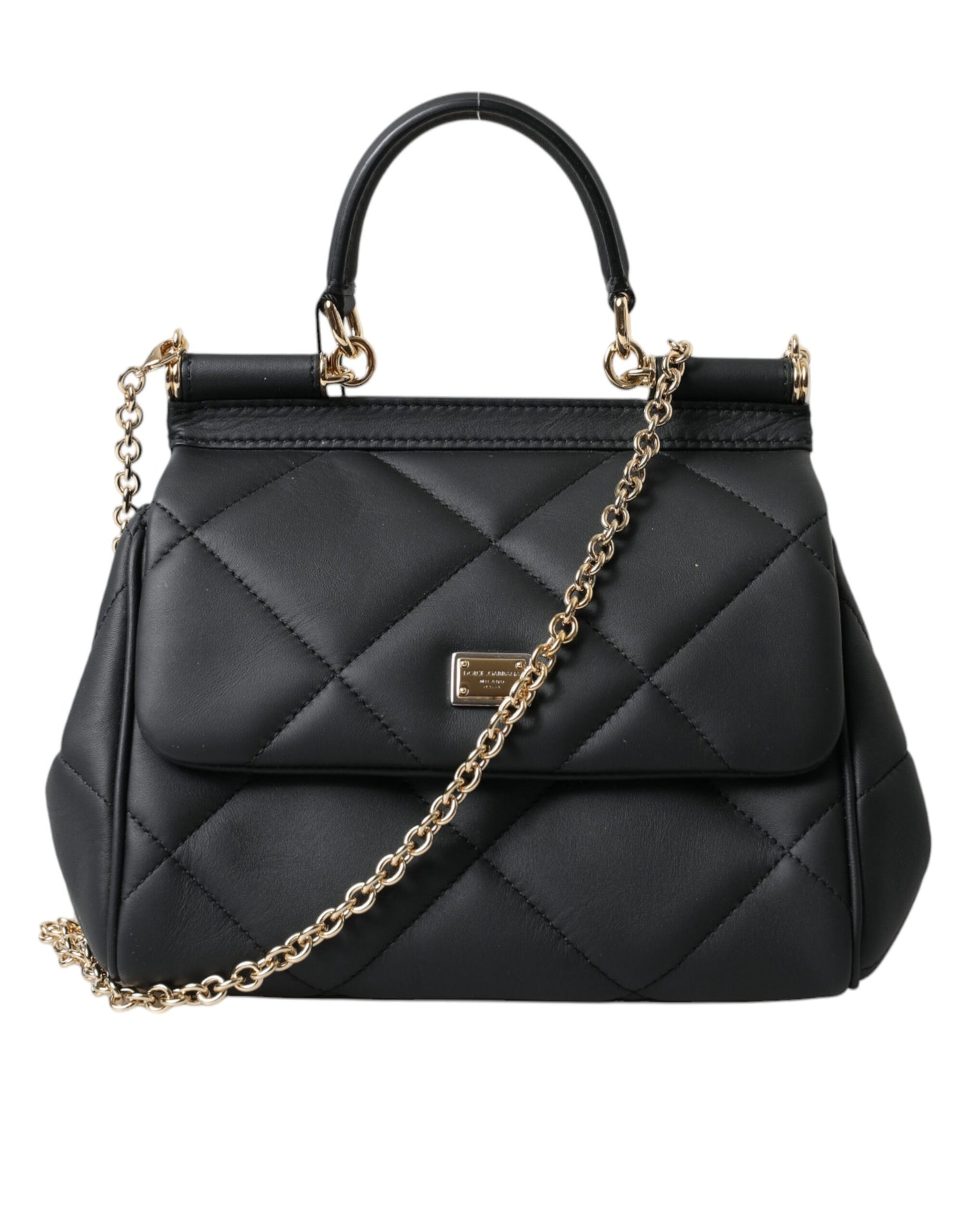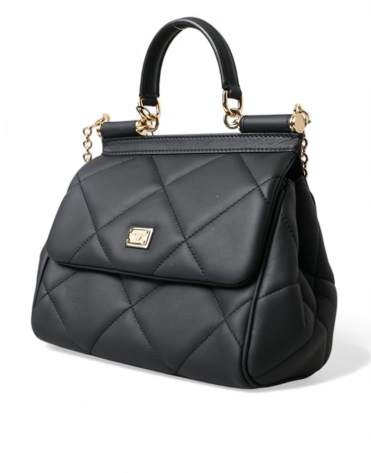 Dolce & Gabbana Black Quilted Leather Borse Top Handle Shoulder SICILY Bag - Women's
