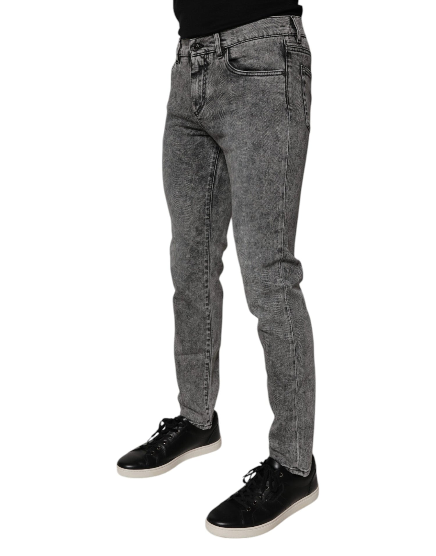 Dolce & Gabbana Dark Gray Washed Cotton Slim Fit Denim Jeans