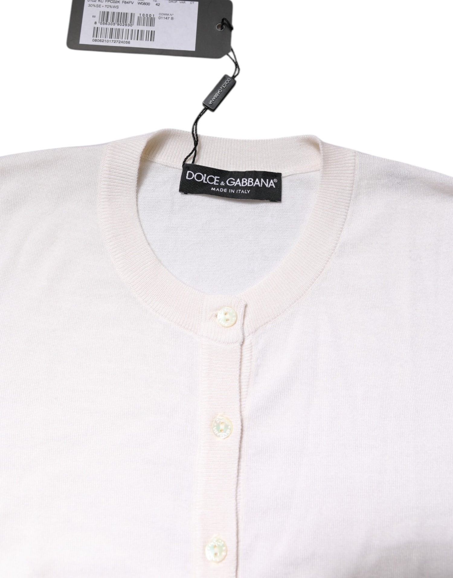 Dolce & Gabbana White Cashmere Crew Neck Top Cardigan Sweater
