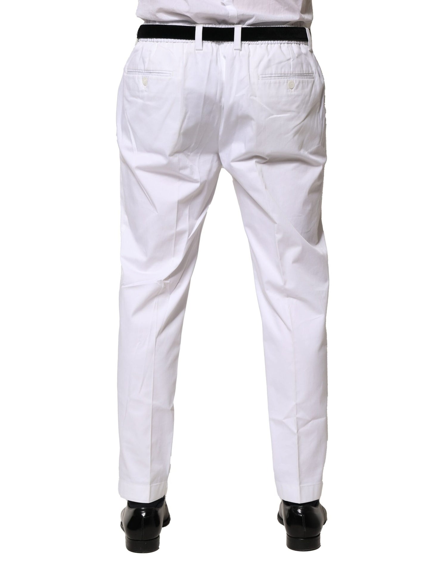Dolce & Gabbana White Cotton Dress Slim Formal Pants - IT52 | XL is backordered and will ship as soon as it is back in stock.