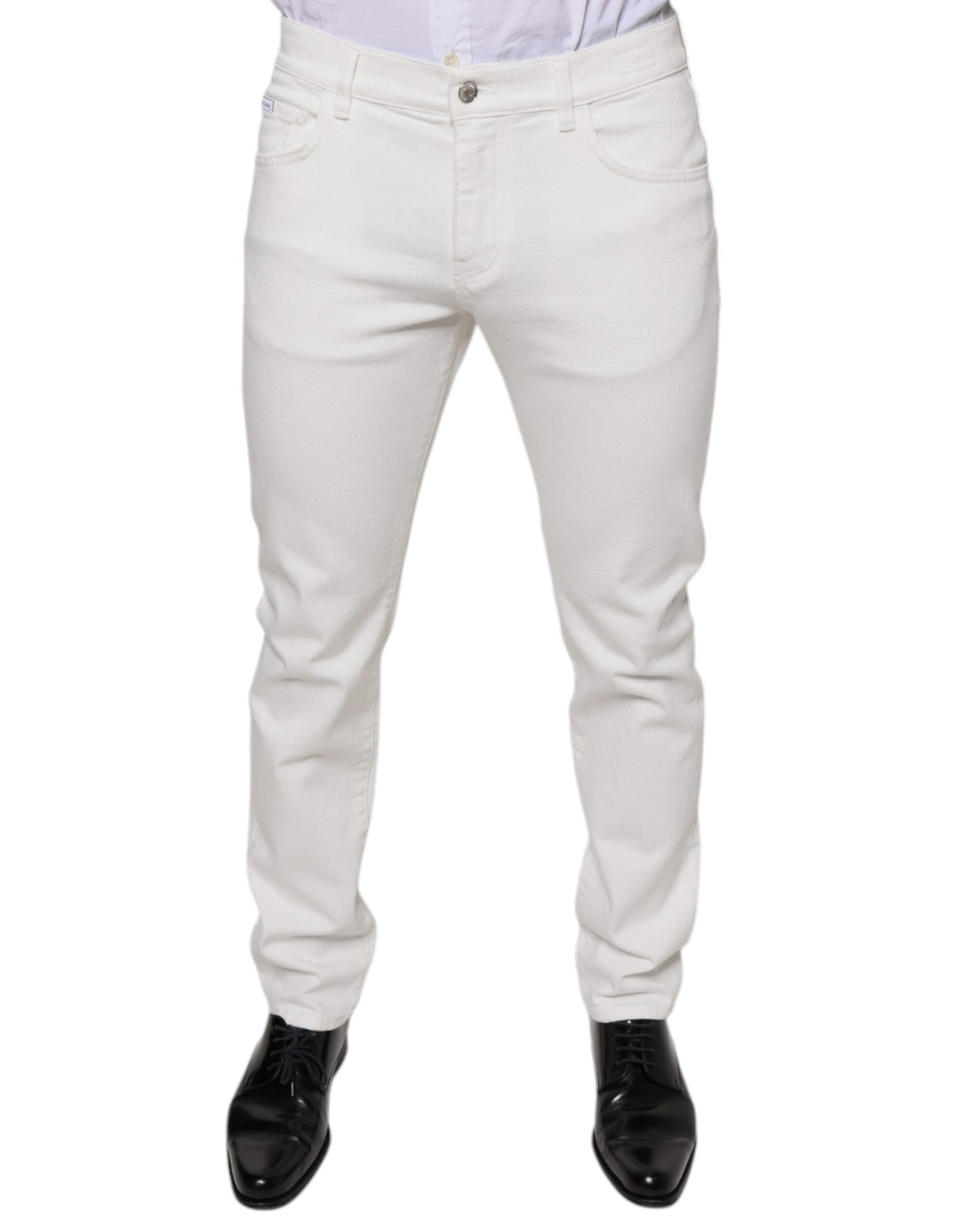 Dolce & Gabbana White Cotton Skinny Slim Men Denim Jeans