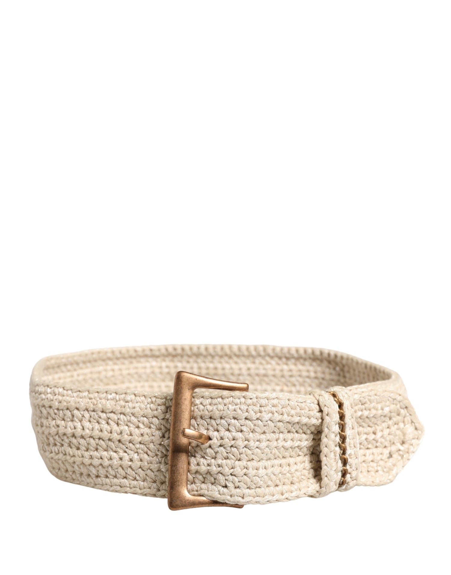 Ermanno Scervino Beige Woven Vintage Metal Buckle Waist Belt