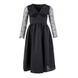 Black dress with Lardini Tulle Bodice. Narrow on top with V-neckline, gathered at the waist and wide on the balloon hem, covered zip fastening on the back side Composition: 100% Polyester-Interior Sku:23FE235-236