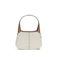 The small Alice Shoulder Bag by Michael Kors is crafted from logo-printed canvas, combining practicality and style. Gold-tone metal details add a touch of luxury, while the adjustable shoulder strap ensures comfort and versatility. The interior features a rear zip pocket for added organization. The zip closure completes the design, making this bag a perfect everyday accessory.