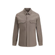The Outershirt hip length with a boxy fit and visible snap front fastening, by Rick Owens is crafted from a mediumweight canvas in a blend of GOTS-certified organic cotton and GRS-certified recycled nylon. A classic shirt collar, signature level shoulder seams and double topstitching define its structured construction, while square chest pockets with beveled flaps and snap cuffs enhance its utilitarian aesthetic. Beveled side seams and a cotton webbing strap with rivet detail on the back yoke add a distinctive touch. This Outershirt by Rick Owens stands out for its matte finish and rigid handfeel, expressing a bold and contemporary character.